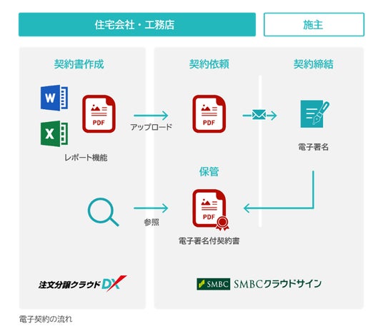 今回の連携により、請負契約書の作成から締結、保管までシームレスな管理が可能になります。住宅会社の完全なペーパレス化が進む事になり、お客様の業務効率化に貢献します。