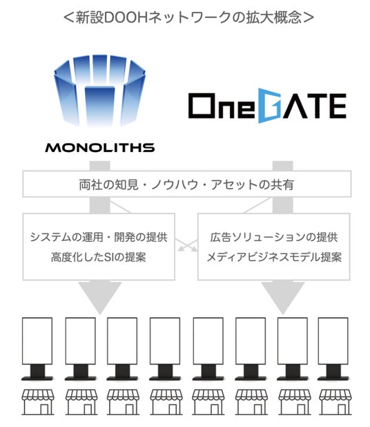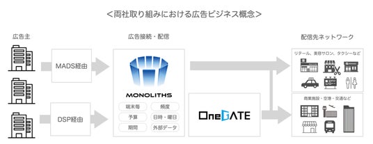 本提携により「OneGATE(ワンゲート)」が導入されているディスプレイに対しては、これまでのサイネージ運用に加え、広告媒体化の付加価値を提供することにより、両社のネットワークを横断して広告配信を行うことが可能になります。これにより、生活者の様々なタッチポイントをカバーしたリーチの拡大と、より広告主ニーズに即した生活者モーメントへの配信を実現します。