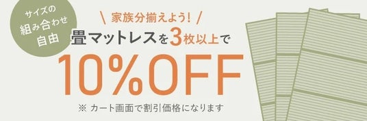畳マットレスを3枚以上ご購入で10%OFFキャンペーンも開催中!
