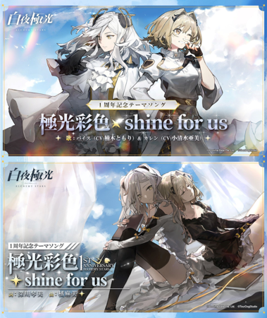 1周年を記念するテーマソングが公開しました。しかも、『白夜極光』の光霊の中でも人気を誇るバイス(CV:楠木ともり)と、カレン(CV:小清水亜美)の二人がボーカルを担当! どのような曲に? 歌詞は? 二人で歌うのか? など、興味は尽きるところを知りません!