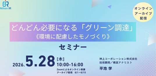 アイアール技術者教育研究所は、気候変動対応や資源管理、エネルギー消費削減が企業課題となる中、調達・製造過程で環境に配慮した選択を行う「グリーン調達」の基礎から実務までを学ぶ公開セミナーを開催します。