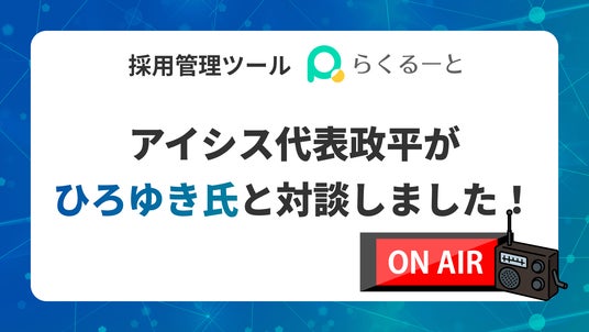 株式会社アイシス(本社:東京都渋谷区、以下「アイシス」)は、採用課題に関する情報発信および企業の採用活動支援を目的とした取り組みの一環として、FM軽井沢の番組「ひろゆきのユキサキミテイ」のスピンオフ企画「ひろゆきとビジネス対談」に協賛し、タイアップ企画を実施いたしました。本企画では、アイシス代表取締役の政平秀樹が、掲示板サイト「2ちゃんねる」創設者であり実業家のひろゆき氏と対談を行いました。
