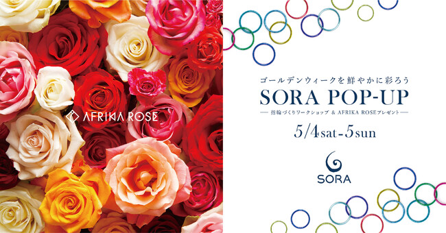 オーダーメイドブライダルジュエリー専門店SORA(本社:東京都渋谷区、代表取締役社長:丸山聰)はゴールデンウィークの特別イベントとして、2024年5月4日(土)5日(日)の2日間、SORA表参道本店にて指輪づくりのワークショップを開催いたします。また、期間中にブライダルジュエリーのご相談でご来店いただいたお客様には、色鮮やかなAFRIKA ROSEのバラをプレゼントいたします。