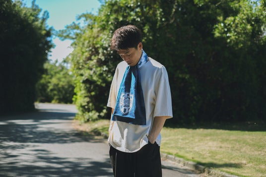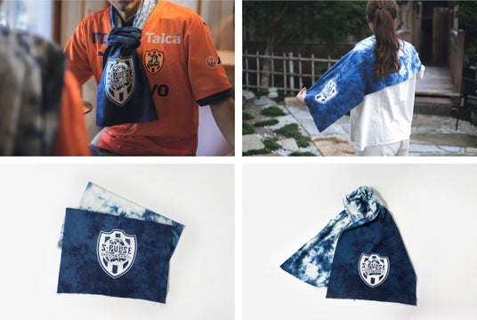 群雲(むらくも)という絞り技法で全体を染めてから、抜染という技法でエスパルスのエンブレムをデザイン。