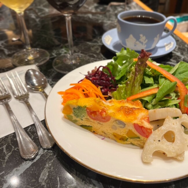 《彩りサラダ・紫キャベツとにんじんのラぺ・フリッタータ・レンコンのソテー》
