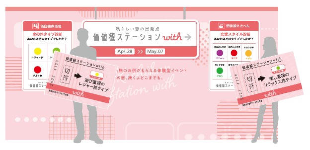『with』は、“良縁”という一つの終点までお客様を運ぶ車両であり、この『価値観ステーションwith』はその始発駅です。本イベントが、自身と価値観の合う方と出会い、その後の幸せな日々を歩き出すきっかけとなればと考えております。今年のGWは『価値観ステーションwith』で自身や大切な人の恋愛価値観を見つめ直してみませんか?