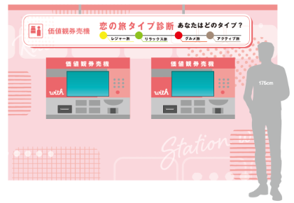 ステーション内に設置された券売機型デバイス『価値観券売機』では、「恋の旅タイプ診断」をご体験いただけます。