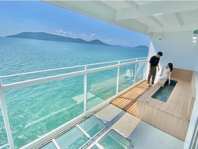 「瀬戸内海に浮かぶテラスリゾート」をコンセプトに、2022年に神戸~小豆島~高松航路に就航しました。天然ウッドデッキのプライベートバルコニーを備えた個室、本物の航海計器で船長気分が味わえる最前方のキャプテンシート、海に飛び出した展望風呂、足湯付きのガラスバルコニー、天然ウッドデッキや芝生広場を備えて明石海峡大橋くぐりが楽しめる「空のテラス」、自動演奏ピアノなど、遊び心あふれる設備が満載です。
