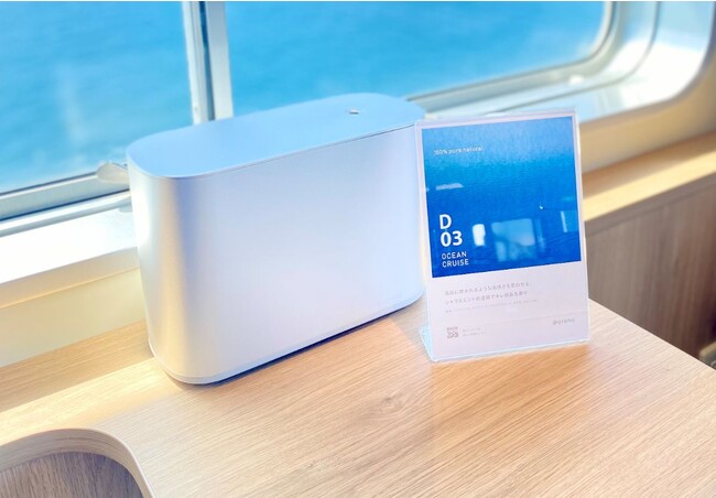 ジャンボフェリー株式会社(本社:神戸市 社長:山神正義)は、より上質なリゾート体験をお楽しみいただけるよう、「あおい」船内4か所にアロマディフューザーを設置しました。設置場所によってこだわりのエッセンシャルオイルをセレクトしています。