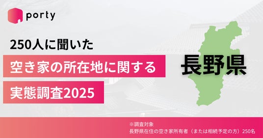 株式会社ポルティ(本社:神奈川県川崎市、代表取締役:平 瑶平、以下「ポルティ」)は、長野県の空き家オーナー(または相続予定の方)250名を対象に、所有または相続予定の空き家の所在地に関する調査を実施しました。