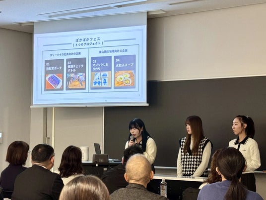 産学連携で地域と企業をつなぐ実践教育を実施~東山田地域の人々や社員に、笑顔と温もりを届ける共創プロジェクトの成果報告。東山田の地域住民・中小企業・農家など、多様な関係者を巻き込んで「温かさ」を伝える。