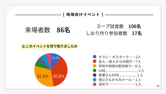 地域住民向けの取り組みの目的は、地産地消の推進や東山田地域にある中小企業を知ってもらうことです。