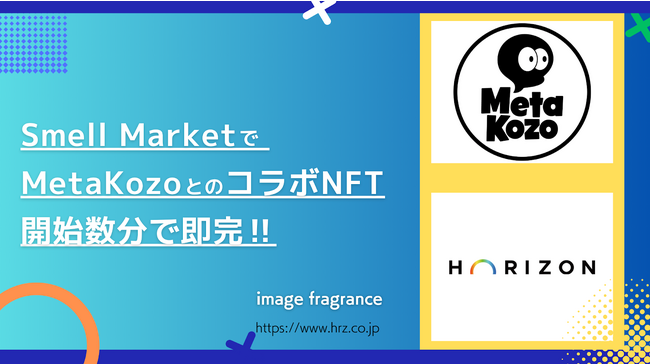 国内最大級のNFTコミュニティのMetaKozoと、Horizon株式会社が運営する香りのマーケットプレイス「Smell Market」がタッグを組んだ初のコラボNFTが、発売開始からわずか数分で全て売り切れるという大成功を収めました。
