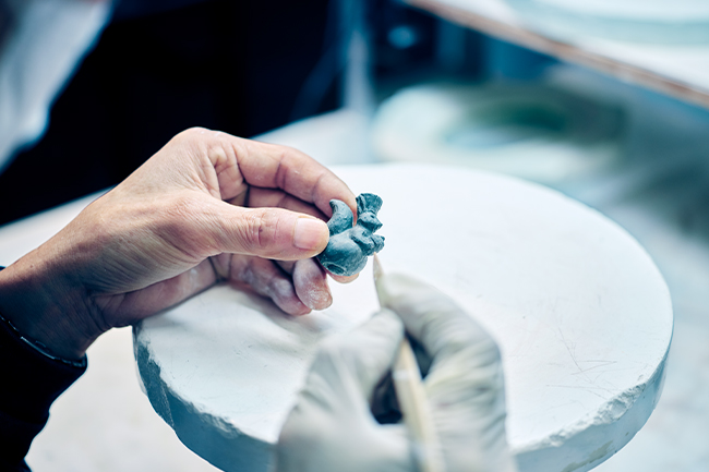 ポットのつまみの型は、職人が一から手作業であたたかみのあるシルエットを生み出し、使いやすさと美しさが両立する計算しつくされた造形に。