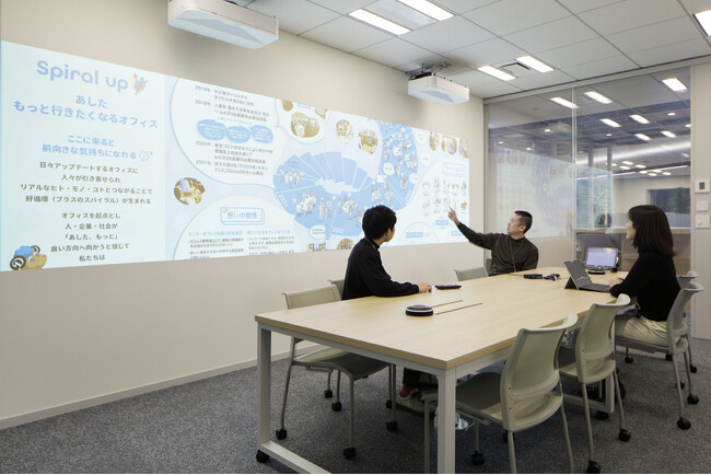本社オフィスについては、20~30代の若手社員を中心としたプロジェクトチームにて「Spiral up! あしたもっと行きたくなるオフィス」というコンセプトのもと、創立100周年に合わせて大規模にリニューアルし、ライブオフィスとして運用を開始しました。