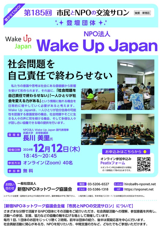 【第185回 市民とNPOの交流サロン(登壇団体:NPO法人Wake Up Japan)】
