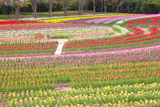65,000平方メートル に200品種75万本のチューリップが咲く世羅高原農場「チューリップ祭」は現在見頃を迎えています。