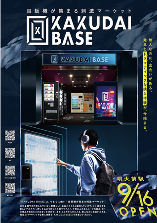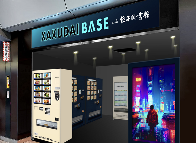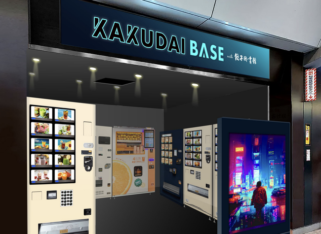 株式会社ダイレクト・ホールディングス(東京都新宿、代表取締役:大久保悠祐、以下DH)は株式会社餃子図書館(本社:東京都中央区、代表取締役CEO:三浦 大介、以下:餃子図書館)と、自販機が集まる刺激マーケット「KAKUDAI BASE」1号店を明大前駅・京王線井の頭線下りホームに9月16日(土)オープンいたします。