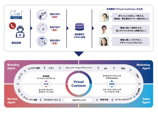 蓄積されたデータはVoC基盤として、商品・サービス開発や顧客コミュニケーションの最適化など、マーケティング活動全般に活用できます。さらに今後は、このVoC基盤をCRM・購買履歴・Web行動データなどの1st Party Dataと統合し、「Virtual Customer(仮想顧客)」としてモデル化。AIエージェントと連携させることで、商品企画や販促施策など、企業全体のマーケティングプロセスを支援する仕組みへと発展していきます。