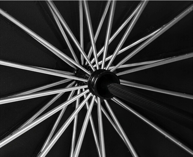 傘の強度を求め、耐久性の高い軽量で錆びにくいアルミニウム合金素材を使用して、16本の傘骨を持った折りたたみ傘を制作しました。これにより安定性が高まり、風に吹き飛ばされにくく、過酷な風雨の状況にも耐えることができます。
