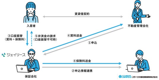本件は、スターツ少短の保険代理店かつジェイリースの保証サービスを導入する不動産会社が、ジェイリースに対して保証申込をした際の申込情報をスターツ少短の保険システムに連携することで、保険申込にかかる手続きを削減することが可能となり、入居申込者と不動産会社の利便性を向上させるものです。また、ジェイリースが賃料等と併せて保険料を収納代行及び保証することで、不動産会社は、更新時も含めた保険料入金確認が不要になるとともに、入居者が無保険となるリスクも防ぐことができます。
