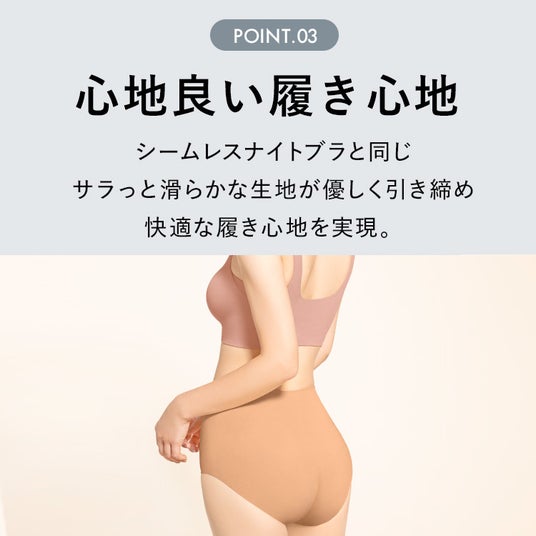 ◎ 心地良い履き心地シームレスナイトブラと同じサラッと滑らかな生地が優しく引き締め。