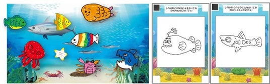 (3)内 容 催事コーナーと隣接したスペースにて、好きな魚のぬり絵をして、その用紙をスキャン