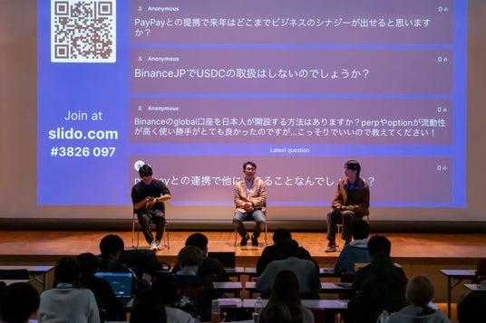 続いて、クイズ終了後は、当社代表千野への質疑応答セッションを実施。「今後Binance Japanでステーブルコインを取り扱う予定はあるか?」「今後の新しいサービスは?」など、多岐に渡る質問が寄せられました。参加された学生のWeb3への関心と問題意識の高さが浮き彫りとなりました。