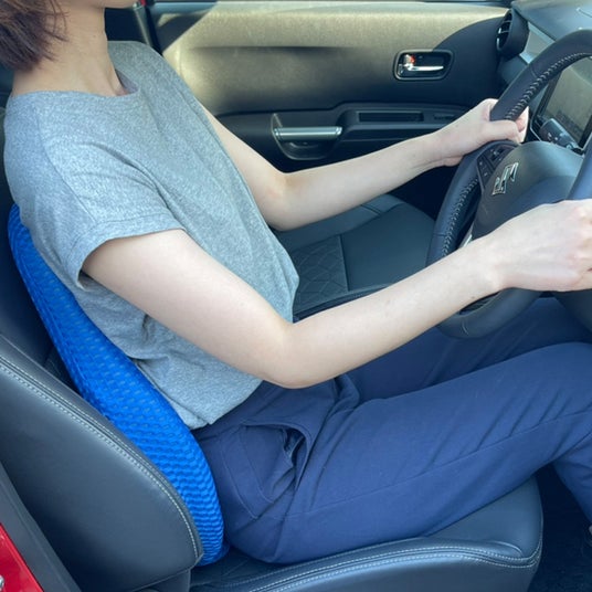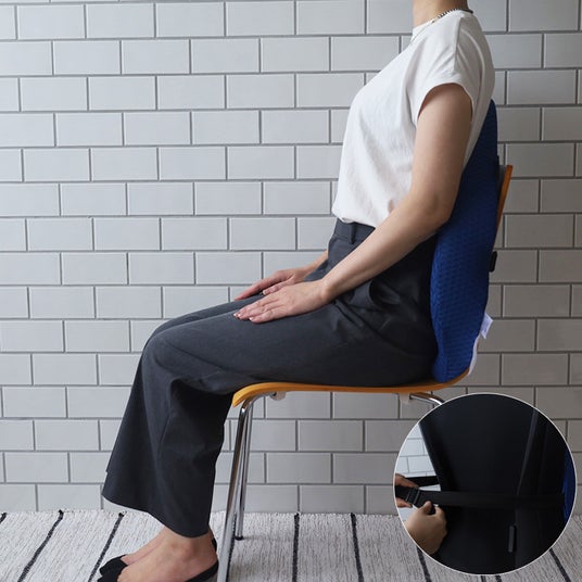 腰から背中にかけてサポートして正しい姿勢へと導いてくれるチェアピロー。オフィスでの使用をメインに想定して開発しましたが、発売後、お車で使用されるお客様が多く、運転時の疲れが軽減したというお声を頂戴しました。