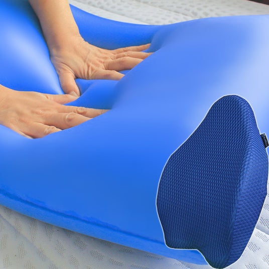 BlueBlood素材をチップ状にしてマイクロファイバー綿と混合することによって生まれた、ふわっと軽いタッチの足枕です。使用中の転がりを防ぐために下部はモールドウレタンを使用して土台の役割を、上部はウレタンチップで柔らかく、足に優しい使い心地にしました。