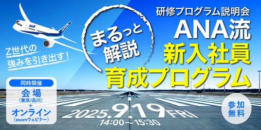 ANAビジネスソリューション株式会社(本社:東京都大田区/代表取締役社長:植野 素明)は、2025年9月19日(金)に会場(東京/品川)とオンライン(Zoomウェビナー)のハイブリッド型で「研修プログラム説明会」を開催します。