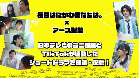 日本テレビ放送網株式会社(本社:東京都港区東新橋一丁目6-1、代表取締役社長執行役員:福田博之、以下、日本テレビ)の公式ショートドラマ『毎日はにかむ僕たちは。』と、アース製薬株式会社(本社:東京都千代田区神田司町二丁目12番地1、代表取締役社長CEO:川端克宜、以下、アース製薬)の洗口液『モンダミン』がコラボし、TVとSNSを横断した試みとして、日本テレビのミニ番組とTikTokが連動したショートドラマを放送・配信いたします。