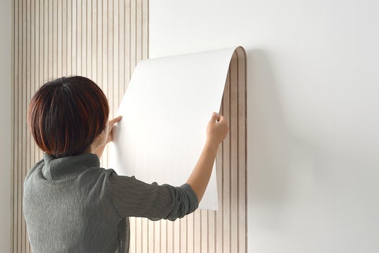 布のような質感の、正方形のフリース(不織布)素材の壁紙。水に浸すと素材の裏面に加工されたのりが湧き出し、手で伸ばして貼ることができます。丈夫な素材で剥がしやすく、5回ほど繰り返し使用できます。