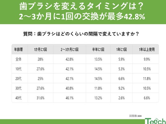 歯科医院向けマーケティングDXサービスを提供するウミガメ株式会社(所在地:東京都世田谷区、代表者:松下勇介)は、歯ブラシの交換タイミングに関するアンケートを実施しましたので、結果をご紹介します。