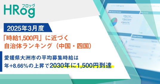 分析用求人ビッグデータを提供する、株式会社フロッグ(所在地:東京都千代田区、代表取締役:阪野 香子、以下「当社」)は、「2025年3月度 『時給1,500円』に近づく自治体ランキング(中国・四国)」を発表しました。