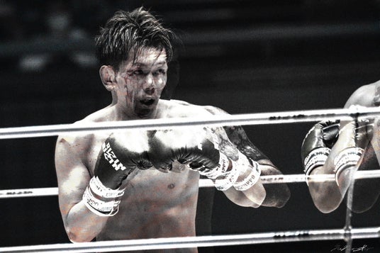 『世界のMUSASHI個展』では、リング上の皇治の写真がアーティストMUSASHIの解釈によって彩られた作品が展示される。ぜひ現地でその迫力あるアートを感じて欲しい。