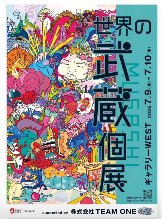 アーティストMUSASHI(石富プロパティー所属)は7月9日・10日の2日間、大阪・関西万博内のギャラリーWESTで『世界のMUSASHI個展』を開催する。