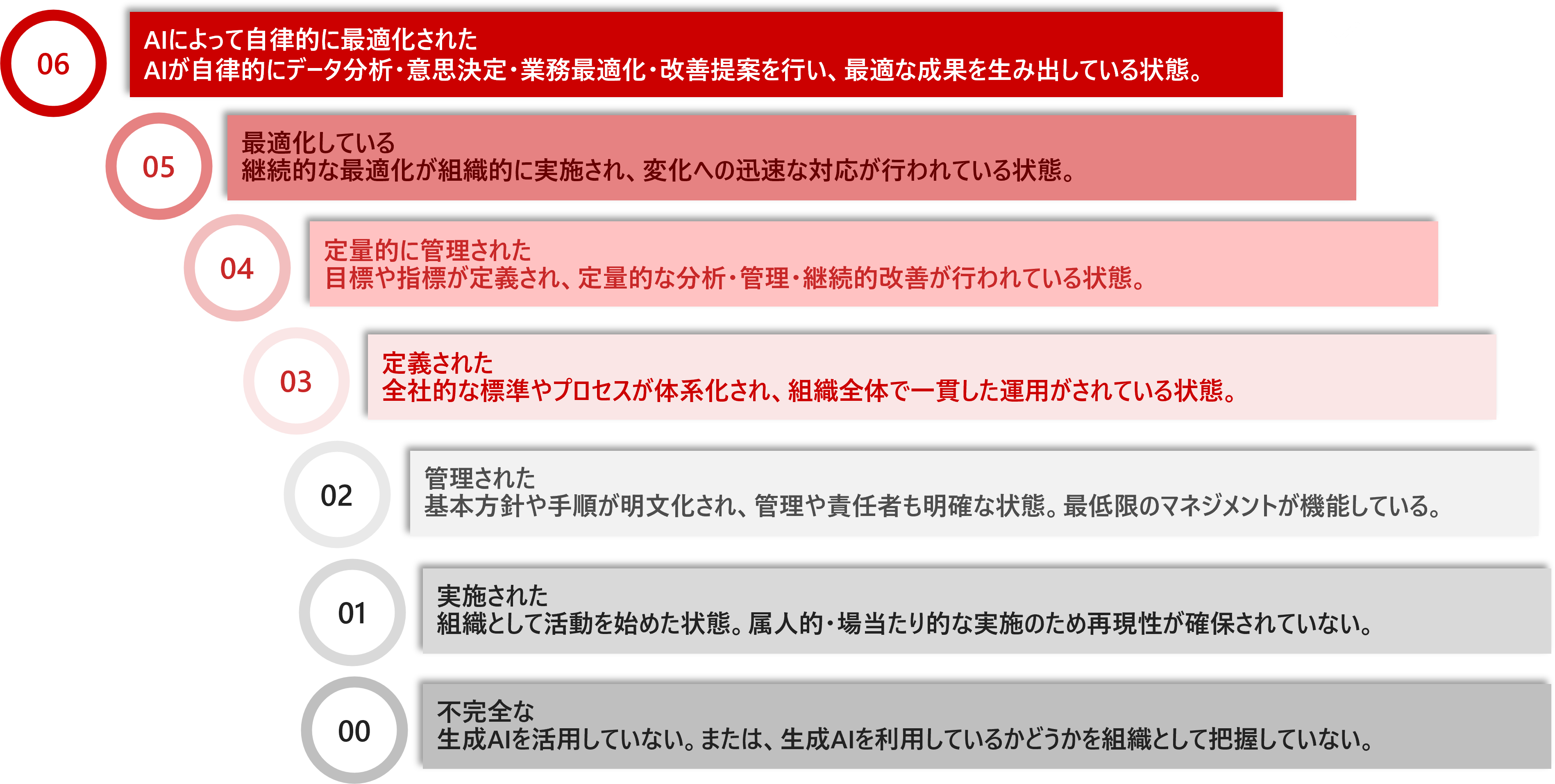 図3 生成AI活用の成熟度モデル「MA-ATRIX」の7つの成熟度レベル
