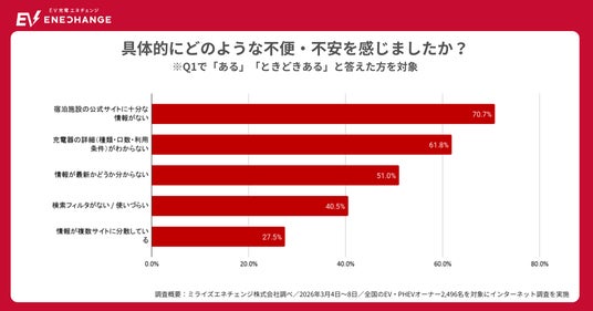 EV・PHEVオーナーを対象に実施した調査(※2)では、EV充電設備のある宿泊施設を探す際に「不便を感じたことがある」「ときどきある」と回答した人が71.5%にのぼり、約7割のEVドライバーが情報収集に課題を感じていることが明らかになりました。