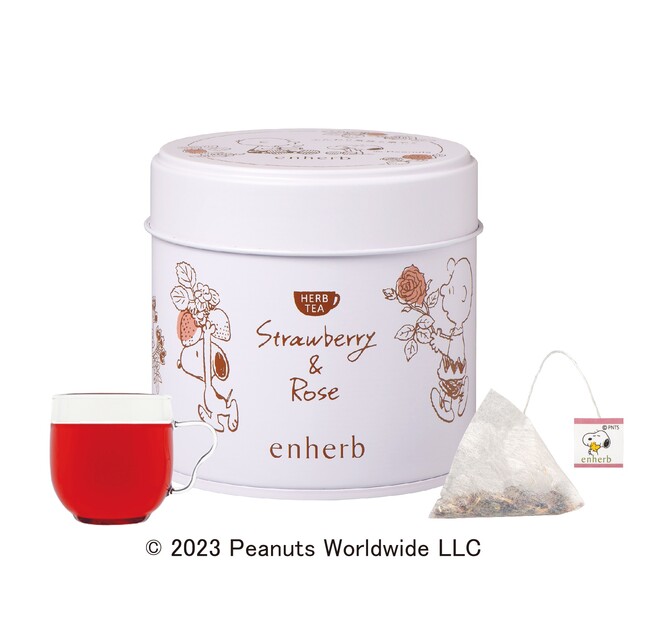美容に嬉しいローズヒップやローズ、ラベンダーなどを配合した季節限定ブレンドハーブティー。スヌーピーとサリーのような笑顔がこの春、咲きますように。