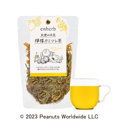 レモンのほどよい酸味とカモミールのやさしい風味の定番ブレンドハーブティー。おうちでゆるりと過ごすスヌーピーと