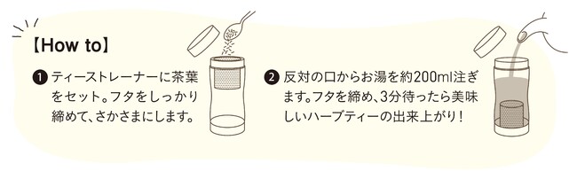 持ち運び可能なティーボトル【T-Go mini】のオリジナルデザイン。携帯しやすい小ぶりなサイズなので、ご自宅やオフィス、外出先でも手軽にハーブティーを楽しめます。ハーバルライフのお供におすすめです。