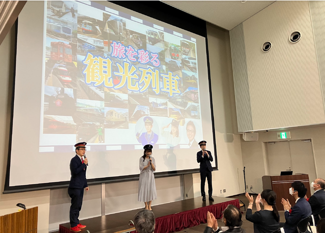 授賞式終盤では、鉄道好きで知られるダーリンハニーの吉川正洋さん、女子鉄アナウンサーの久野知美さん、ホリプロマネージャーの南田裕介さんによる、観光列車にちなんだ特別企画も!「こんな観光列車は嫌だ!」として、JR6社の旅を彩る観光列車を紹介しながらトークを展開し、会場は笑いに包まれました。