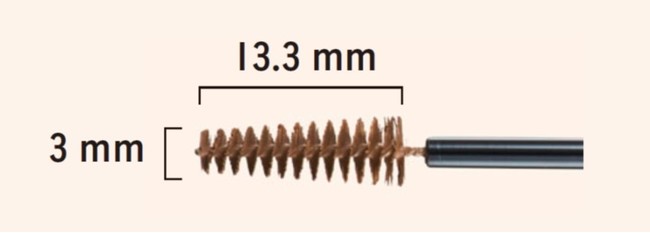 ブラシの最短直径は3mm。サイズも小さくすることで、肌に沿うように生えている眉の毛も根元から立ち上げて、1本1本をとかしながら毛先まで色づけます。肌に液が付きにくく、眉頭から眉じりまで思い通りの毛流れにスタイリングすることが可能です。