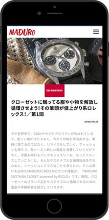 『マデュロ・サステナ・クローゼット Powered by RECLO』の買取・販売特設サイトでは、連載で紹介しきれない内容をより深堀し、毎週紹介。「RECLO」のサービスページへリンクしているため、我々の想いに共感していただいた読者様が実際にクローゼットを覗き、その場で買取査定を依頼したり、商品を購入したりできるようになっています。