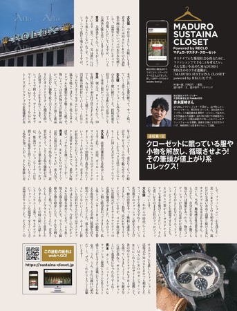 連載では『MADURO』の総編集長大久保氏と当社代表取締役青木が対談し、クローゼットに眠る洋服や小物をサステナブルに循環させるための逸品や情報を紹介していきます。