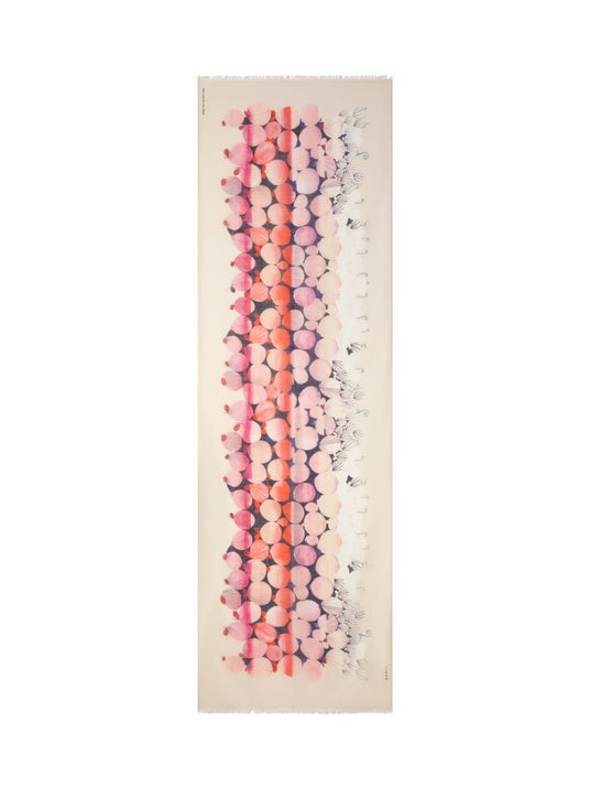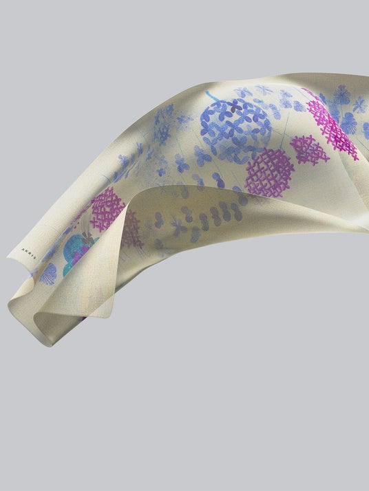 アクリス2024年春夏コレクションのインスピレーションとなった、上野リチ・リックスの作品の数々。彼女が紡ぎ出す独特で詩的な“ファンタジー”の世界観に、クリエイティブ ディレクターであるアルベルト・クリームラーが深く心を動かされたのがきっかけでした。そんな彼女の作品を、アクリスが誇るフォトプリントを駆使し、緻密で美しいスカーフに再現。アクリスブティック8店舗限定で販売がスタートしました。