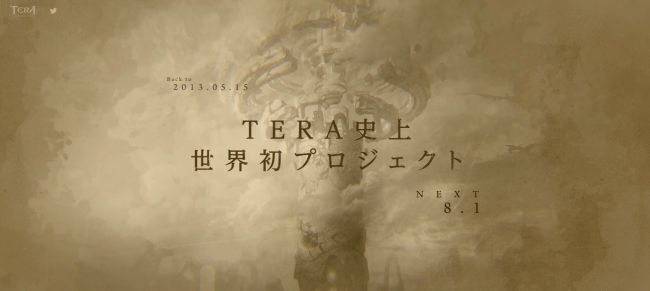 7月18日(水)に公開したティザーサイトでは時間が遡る表示がされておりましたが、現在は「2013.05.15」で停止し、セピア調で描かれた風景が表示されています。来週8月1日(水)TERA史上世界初プロジェクトの公開を楽しみにお待ちください。