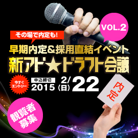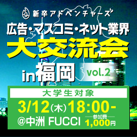 ※「新卒アドベンチャーズ」では、広告・ネット業界を志望する学生に向けて今後も様々な就活イベントを開催してまいります。