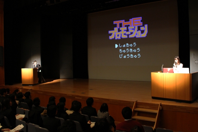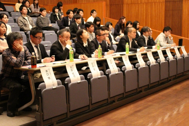 当イベントのメインコンテンツであるプロモーション企画コンテストでは、100組を超えるエントリーから企画審査を通過した6組のスーパー就活生たちによるプレゼンバトルが行われました。「とある書籍を1万人の学生に知らしめる企画を考えよ!」というお題に対し、参加チームの学生たちは凝りに凝って用意した企画書を大画面に映写しながら、熱のこもったプレゼンテーションを行い、企画力とプレゼン力をアピール。
